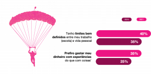 Entre 2015 e 2021, de 12% a 24% das pessoas admitiram estar priorizando tempo para si mesmos. Mudanças de carreira ou largar seus empregos totalmente para ir atrás de seu propósito se tornou algo comum entre os americanos1